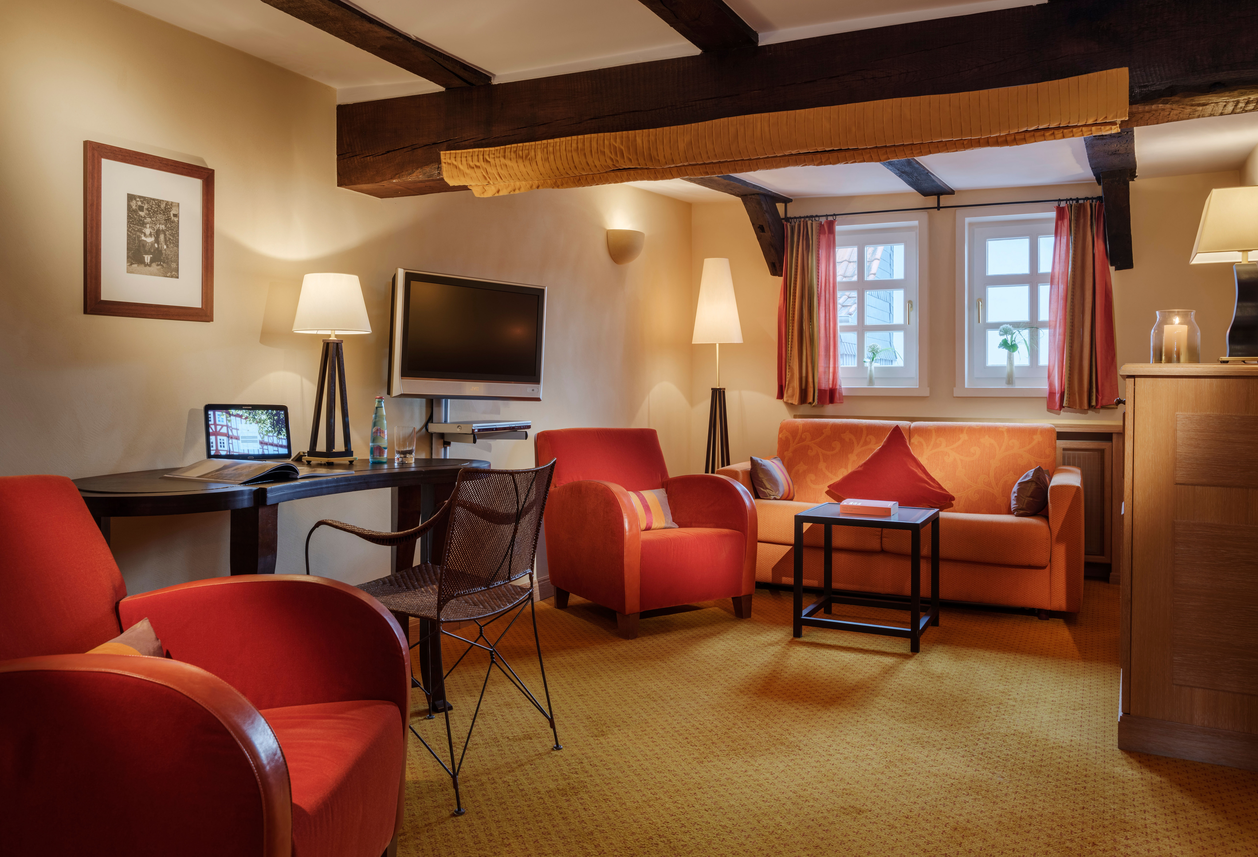 U verblijft in een gezellige vakwerkkamer of in een van onze moderne kamers in mediterrane stijl – dat kiest u helemaal zelf! Alle kamers zijn comfortabel uitgerust met moderne technologie.